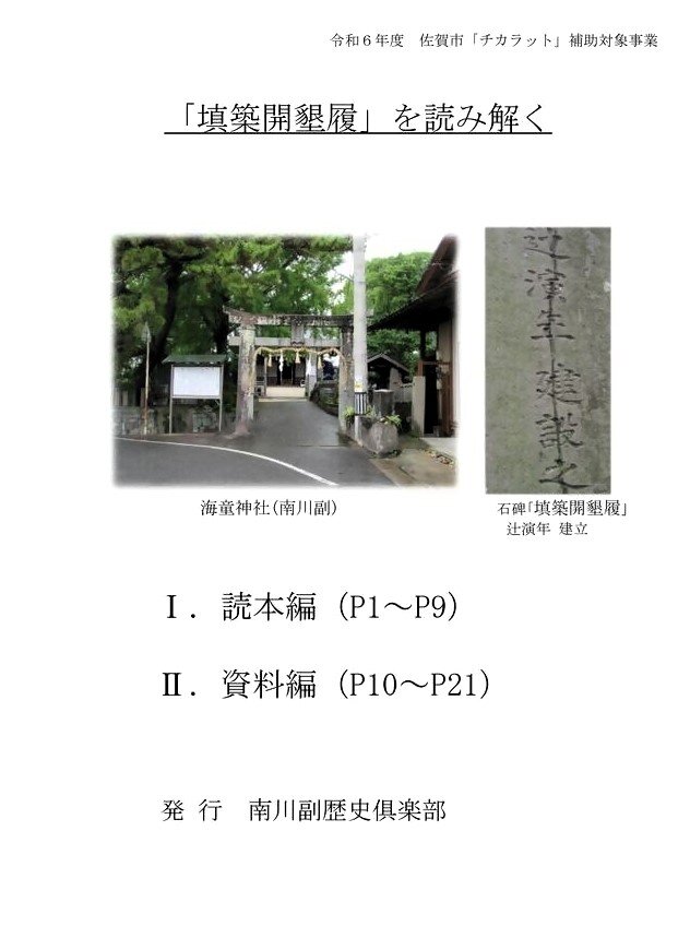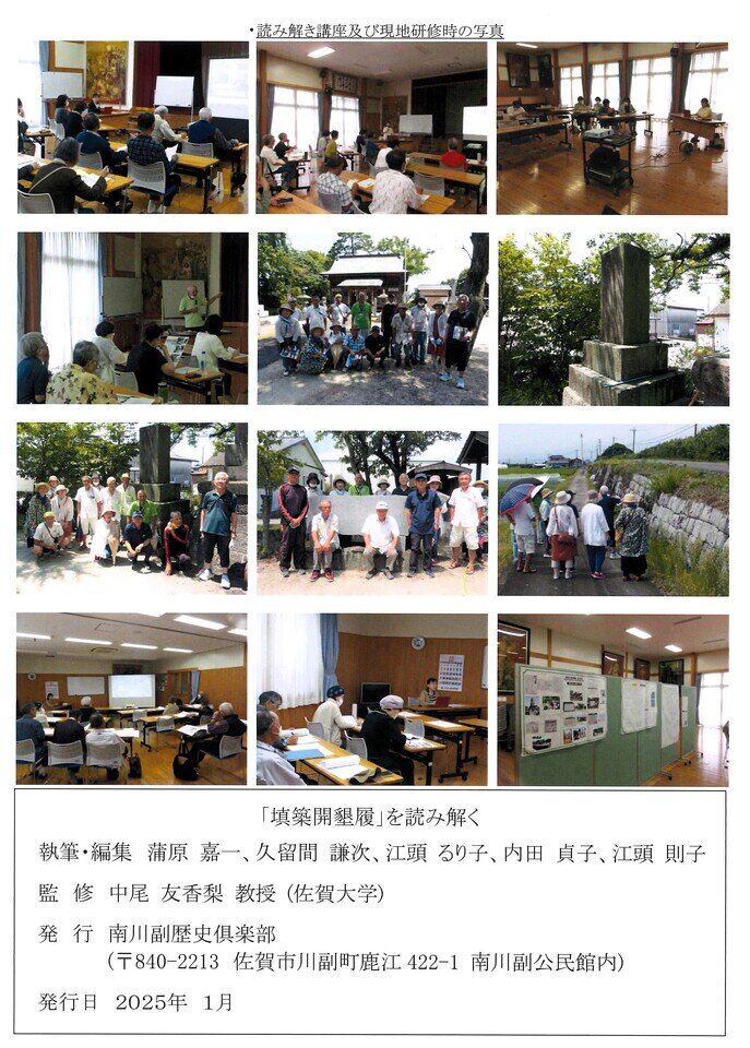 2023年度から南川副歴史倶楽部と南川副公民館が共催で、歴史講座「"填築開墾履"を読み解く」を開催し、2024年1月に読み解き冊子が完成しました。