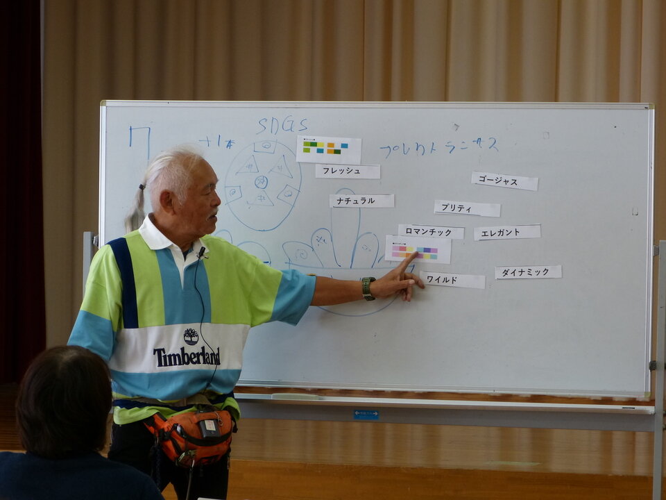 寄せ植えのポイントは春と同じくボーダーとラウンドのお話と、お花のカラーイメージのお話を。今回は豪華(ゴージャス)を目指されている方が多かったようです。