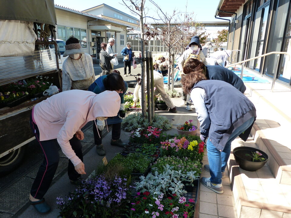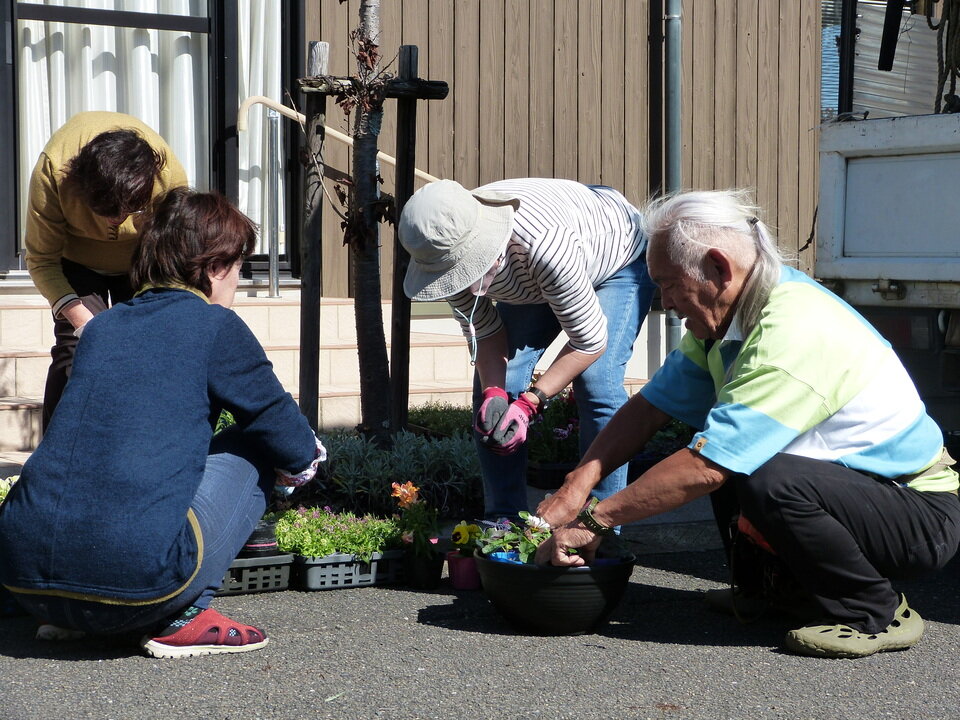座学が終わればいよいよ実地です。皆さん、楽しそうにプランターを準備され、花苗を選んでおられました。プランターの最終チェックを中川先生に見ていただく列でも、他の参加者さんへ自分が作ったプランターイメージを話したり、終始、和気あいあいとした講座になりました。