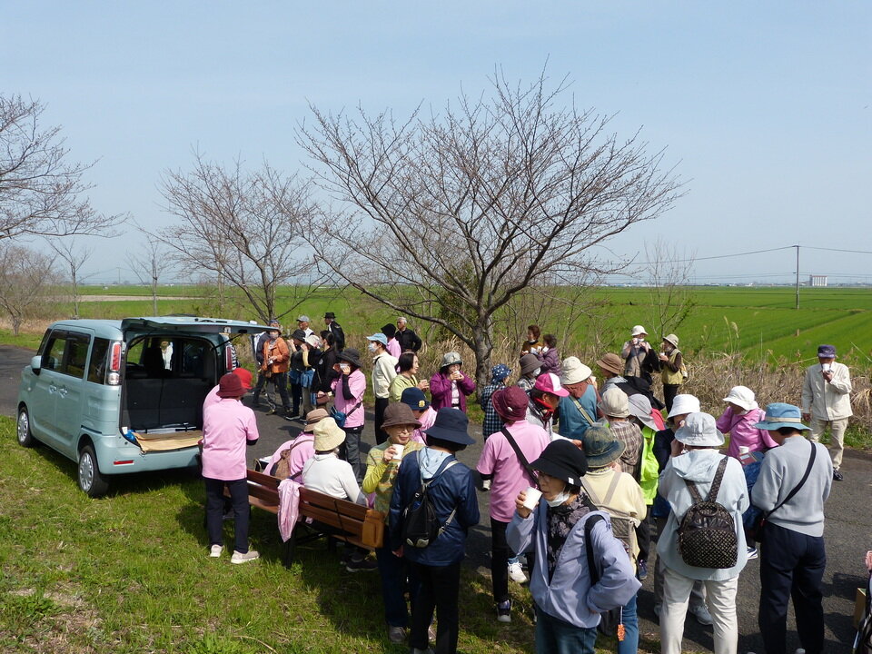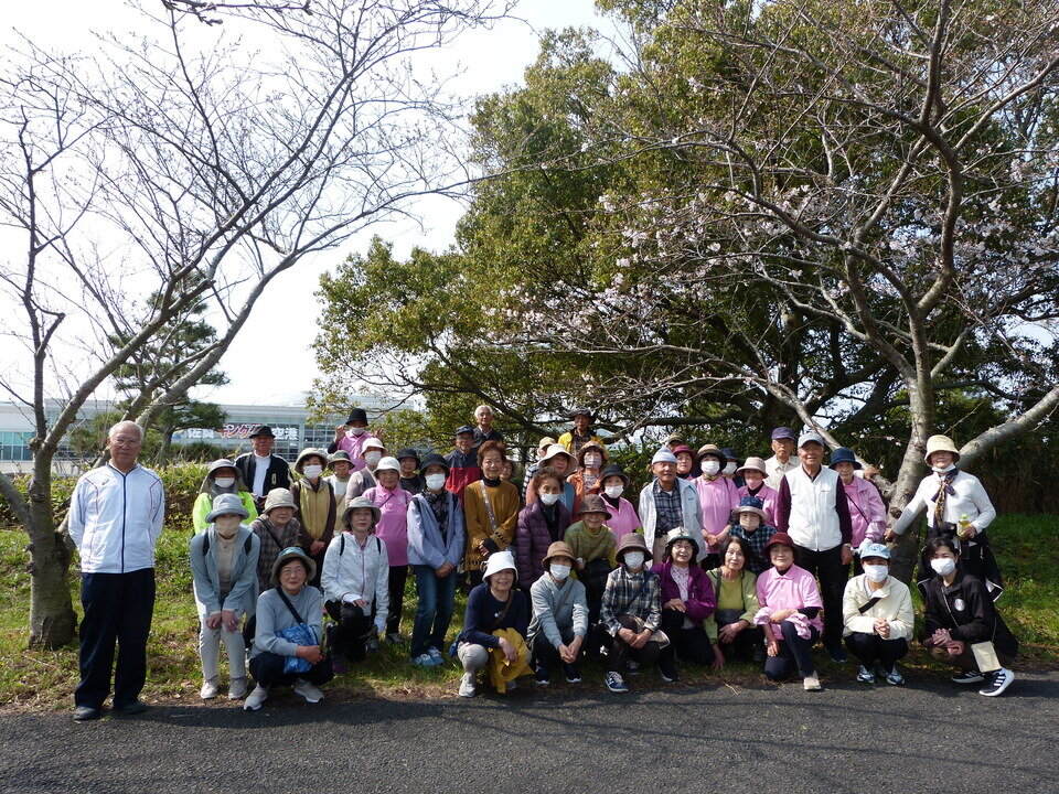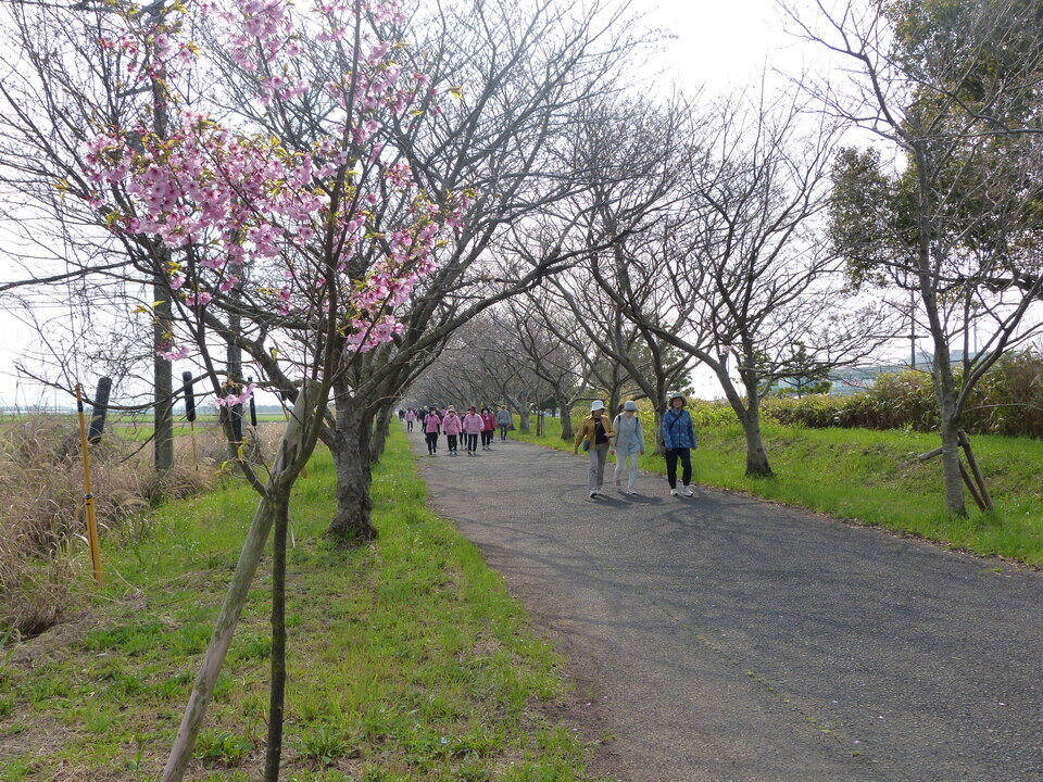 3月27日(金)、まち協の健康福祉部会と共催で、「犬井道の歴史を知ろう②&桜ウォーキング」を開催しました。ウォーキングを行ったのは、空港北側の桜ロードです。この桜ロードは、佐賀空港開設時に、関東に住む川副出身の方々からの寄付金で作られた道だそうです。道の西側入り口に寄付をされた方々のお名前を刻んだ記念碑がありますので、気になる方は散歩がてら足を運んでください。