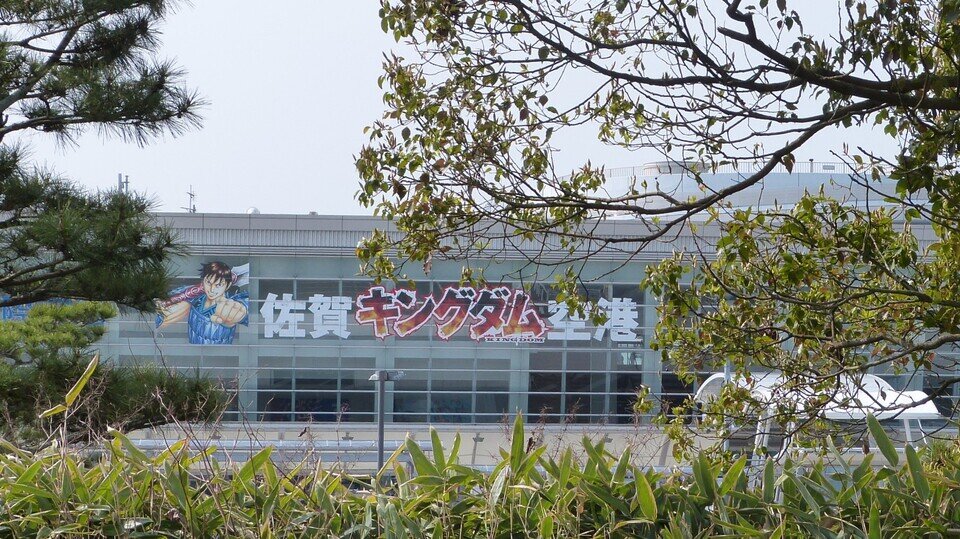 記念撮影は、期間限定の『佐賀"キングダム"空港』をバックにしてパチリ
