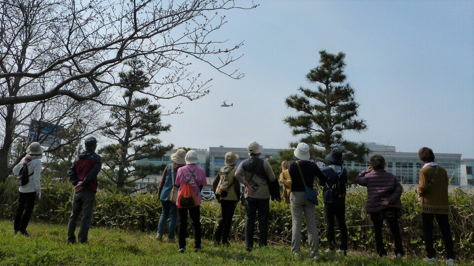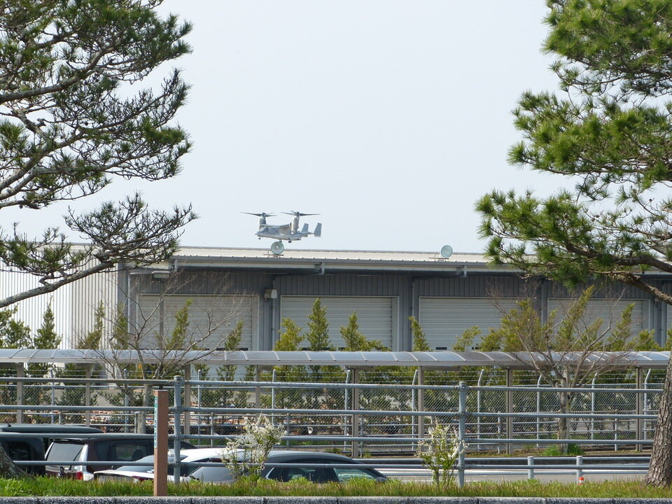 ちょうど、オスプレイが離着陸を行っていたので、皆さん興味津々でした。![]()