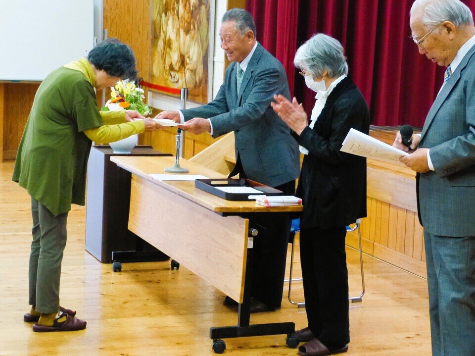 竹下会長の挨拶・来賓の祝辞の後、会員の表彰(米寿8名・傘寿9名・ダイヤモンド婚1組)が行われました。