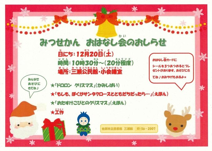 みつせ図書館 "12月のおはなし会"のお知らせ
