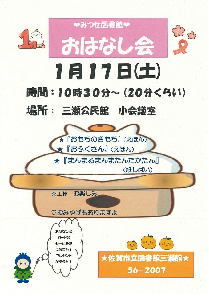みつせ図書館 "1月のおはなし会"のお知らせ