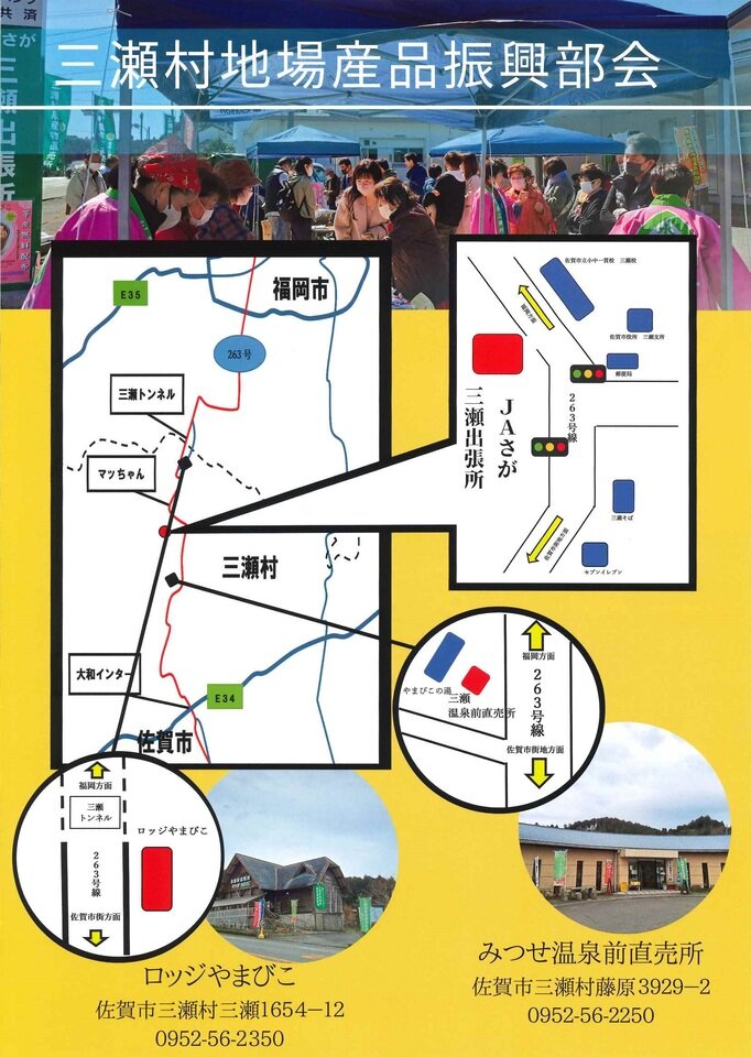 また、地場産品直売所など三瀬村内3ヶ所で、三瀬村で採れた野菜、米などの農産物やゆずこしょう、みそ、糀、塩糀などの加工品も販売されます。