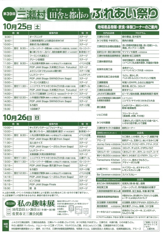 第39回 三瀬村田舎と都市(まち)のふれあい祭りが開催されます。