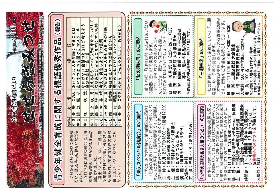 ○ 市立図書館三瀬館からお知らせPDF版はこちら。→ R7.10三瀬公民館だより.pdf