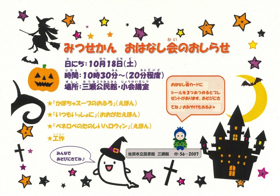みつせ図書館10月のおはなし会を開催します。