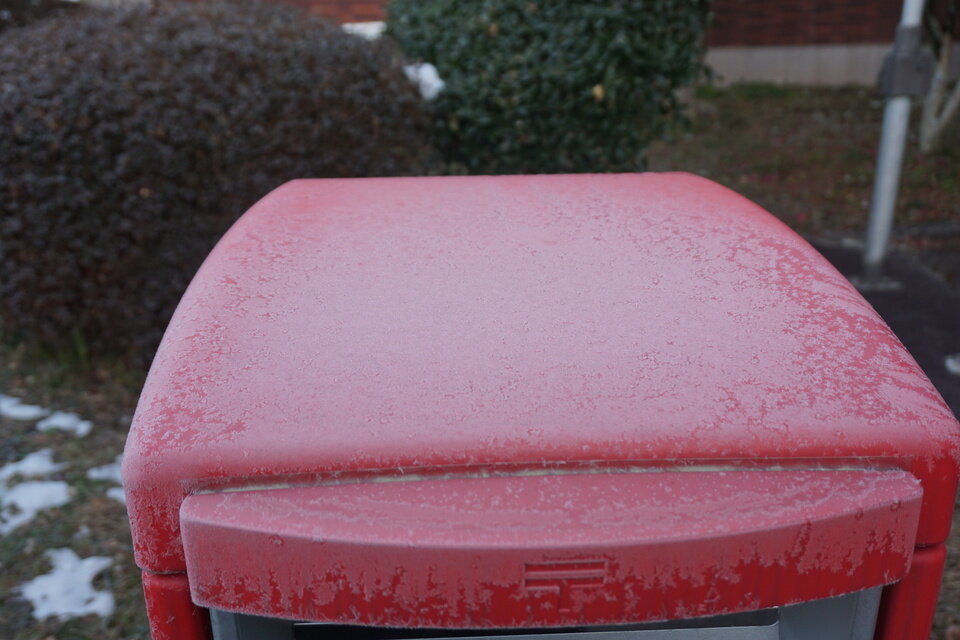 今週も寒い日が続きそうですので、暖かくしてお過ごしください。○気温計は、この冬最も低いマイナス8℃!○三瀬公民館周辺は雪も残り、植栽なども霜で真っ白です