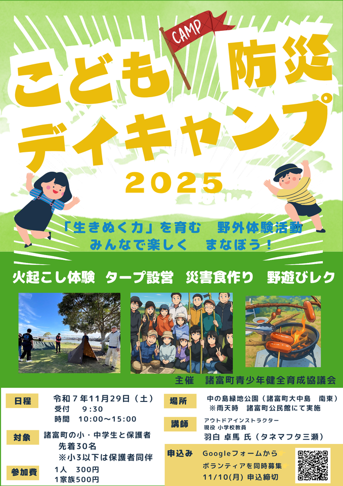昨年に引き続き、『こども防災デイキャンプ』を開催します。
