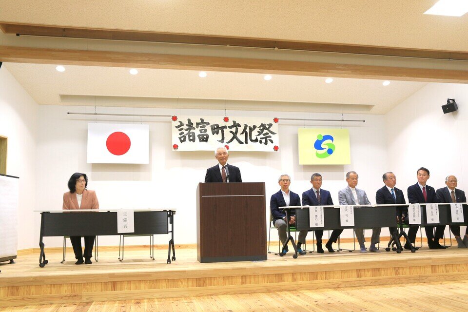 令和7年11月9日(日) 佐賀市文化連盟諸富支部 主催の諸富町文化祭が、諸富町公民館にて開催されました。なかよし保育園のかわいくて元気いっぱいの演奏から始まりました。開会式では、本年度より諸富支部長になられました平川昭彦さんがご挨拶されました。