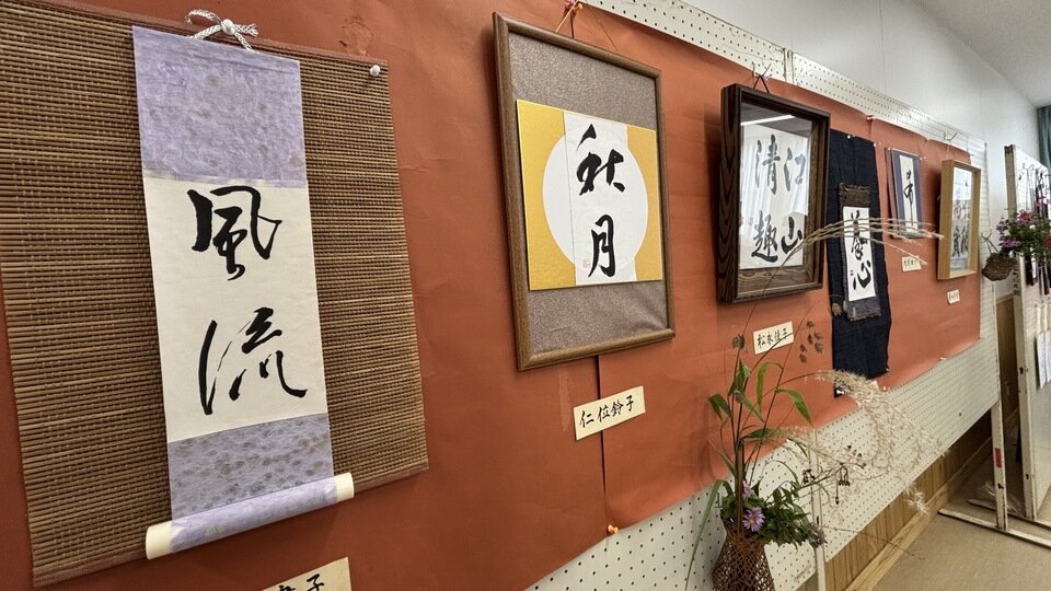 また、公民館内には町内サークルの作品が展示されていました。