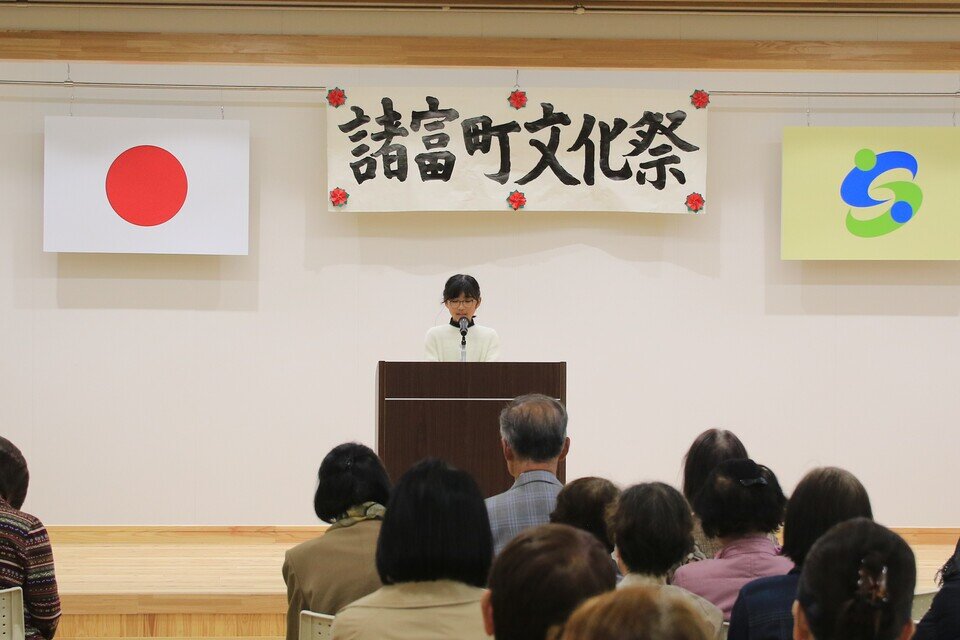 様々なステージ発表のなか、佐賀市少年の主張大会 諸富校区代表者の発表もありました。