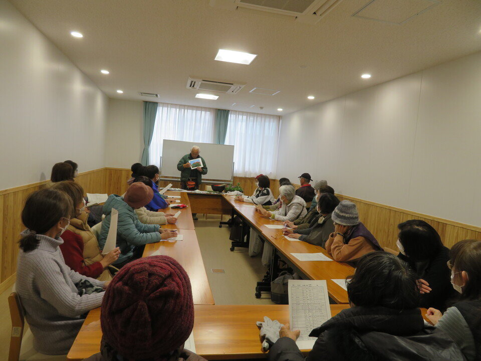 令和7年12月12日(金)に、みどりのカウンセラー中川達也さんを講師に招き、みどりを楽しむ教室を開催しました。「門松風寄せ植え」というテーマで草花の魅力を引き立てる配置と色彩バランスについて学びました。中川先生のユーモアを交えた講義で、皆さん終始笑顔がたえず楽しく講義を受けられていました。また、身近にある毒草の話には皆さんとても興味を持って聞き入られていました。