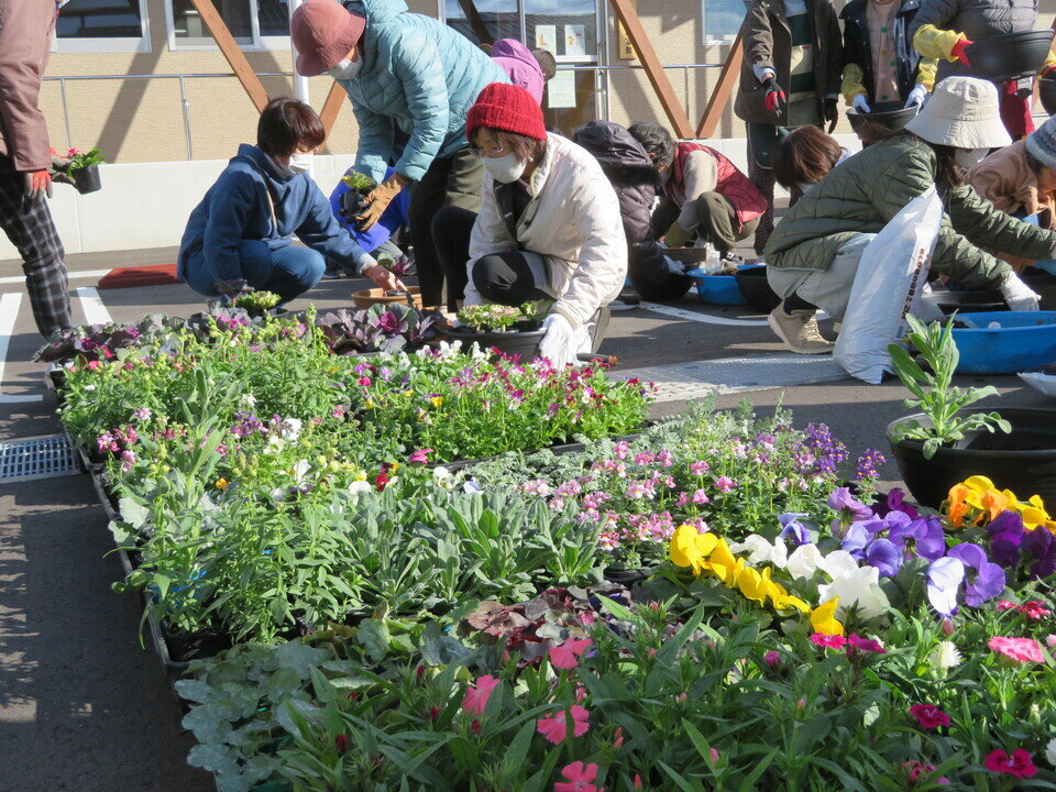 講義のあとは、習ったことを思い出しながら皆さん自分の思いを込めて「門松風寄せ植え」を楽しまれていました。