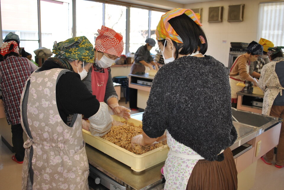 その後、2回めの味噌つくりをしました。例年味噌つくりは年に1回行っていましたが、回数を増やしてほしいという要望が多かったため、今年度初めて2回開催しました。