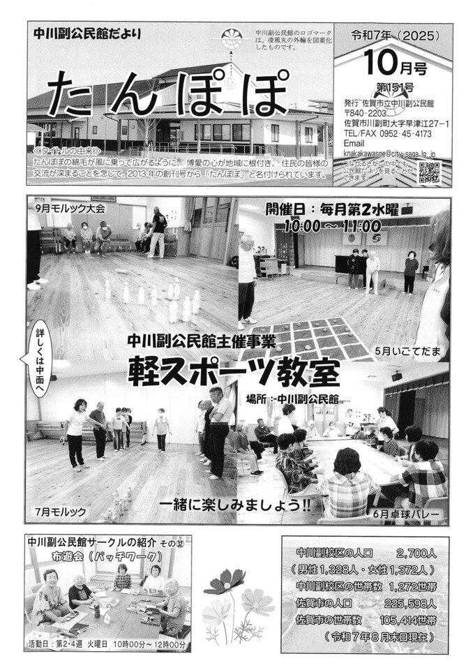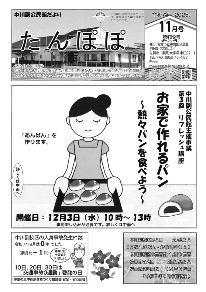中川副公民館だより(たんぽぽ)10月号を発行しました