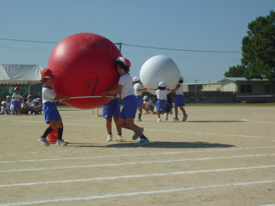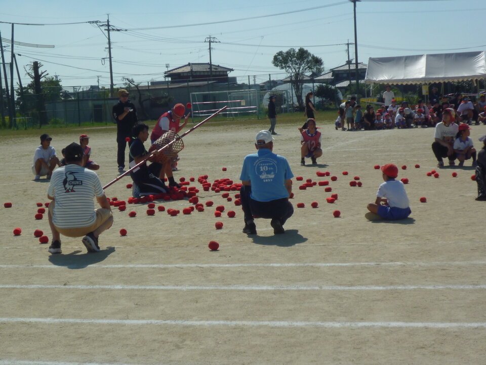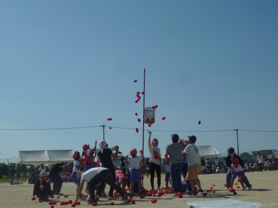 10月12日(日)真っ青な秋晴れの空が広がる中、中川副小学校の運動会が開催されました。子どもたちは本番に備えて自分たちで意見を出し合い、準備をしてきたそうですが、その中で、「地域の方たちにも運動会に参加してほしい。」との意見が挙がったそうです。 運動会では、小学校の児童と地域の大人たちが協力して「みんなで玉入れ」を行いました。赤、白どちらも楽しそうに籠をめがけて玉を投げていました。