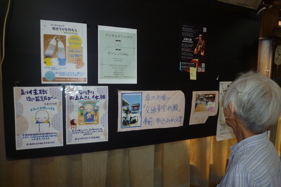 妙誓寺では年中行事である、新年講、御経会法要、盂蘭盆施餓鬼会、毎月12日のお題目講のほかに、交通安全祈願、地鎮祭などのほかに若い熱心な坊守さんが中心となって「フレンドマーケット」「バザー」「文化祭」などの楽しいイベントや、「お寺de宿題」「おてらおやつ」などの地域活動、さらに、文化サークルとして「詩吟のおけいこ」「ピアノレッスン」「ヨガレッスン」「トールペイント教室」「写経」なども行ってありました。