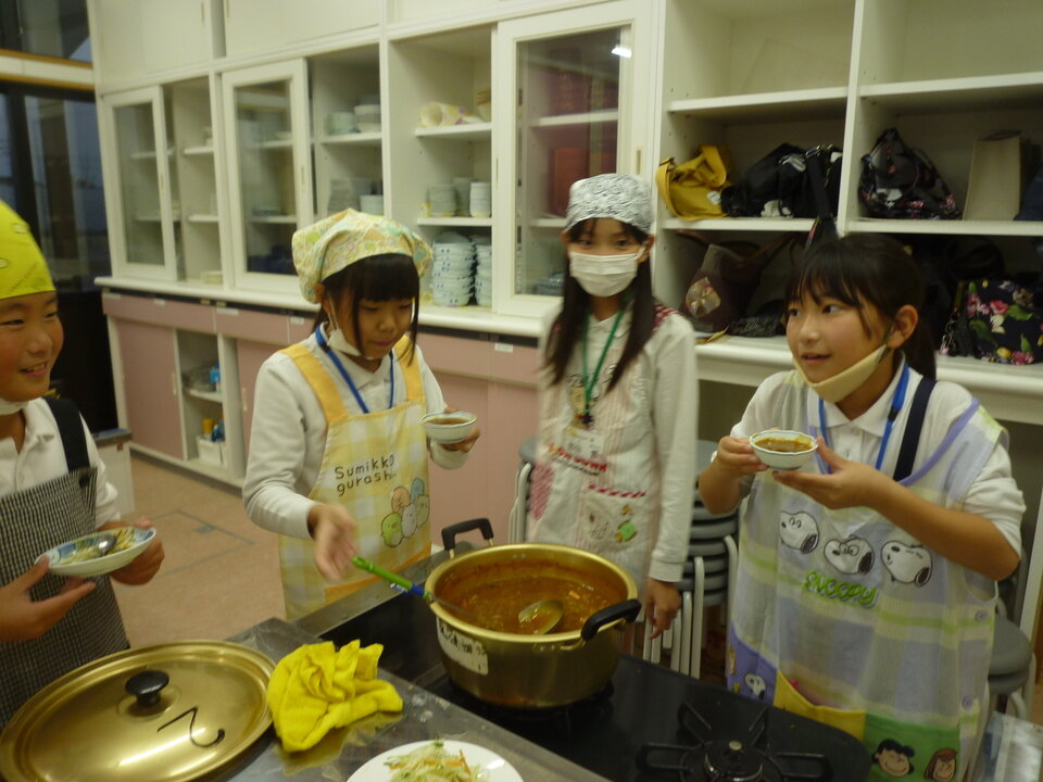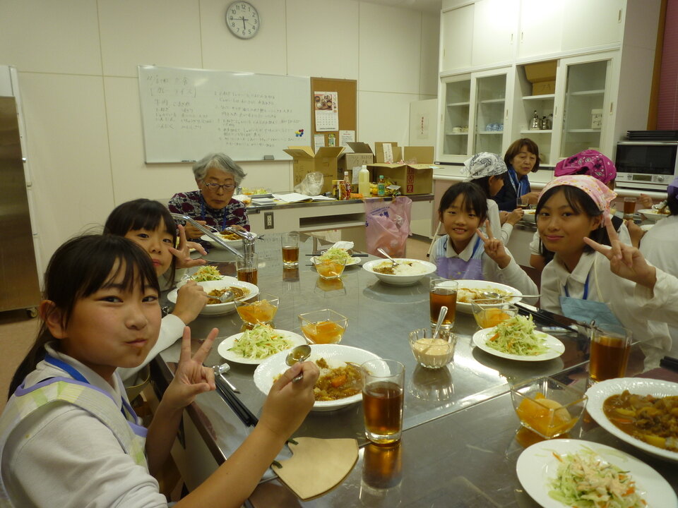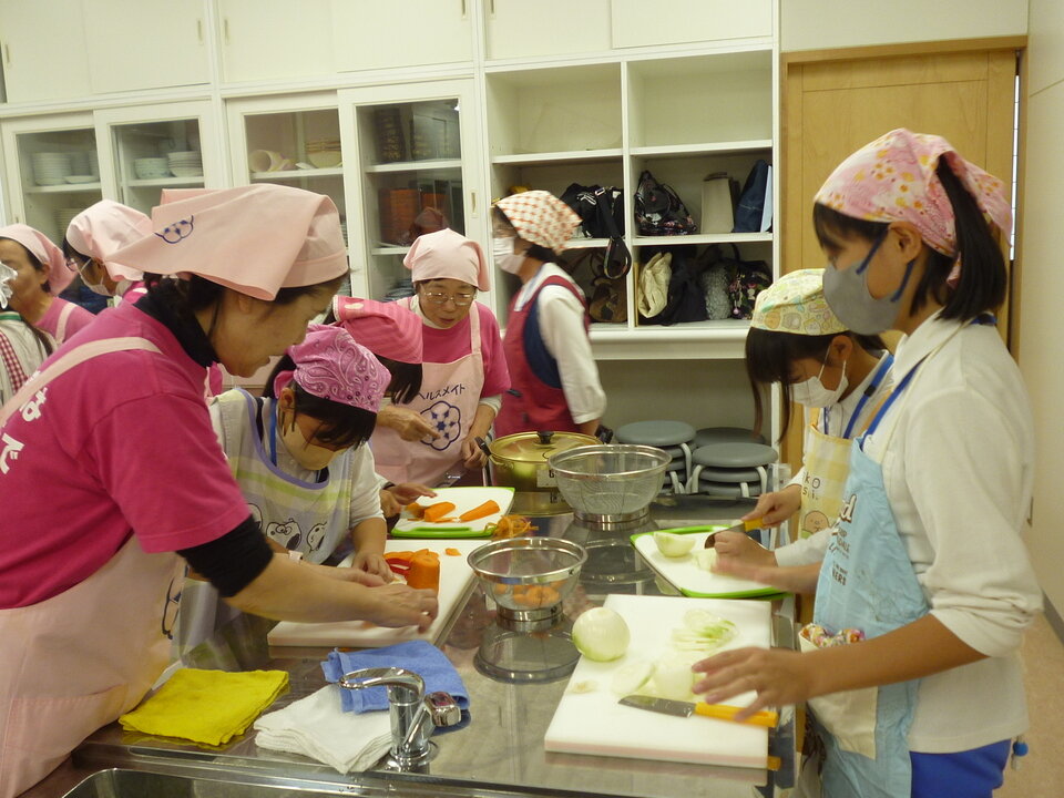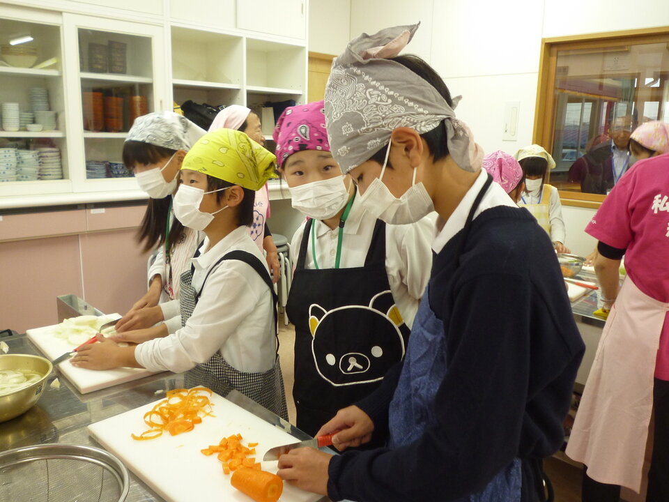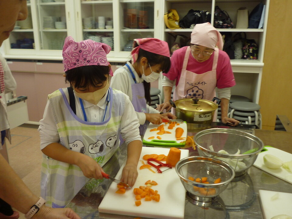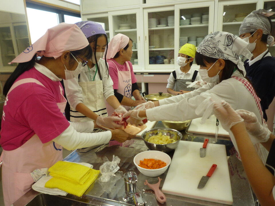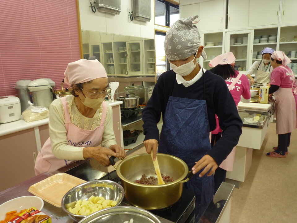 中川副食生活改善推進協議会のみなさんが丁寧に教えてくださって、みんな手際よくカレー作りができました!