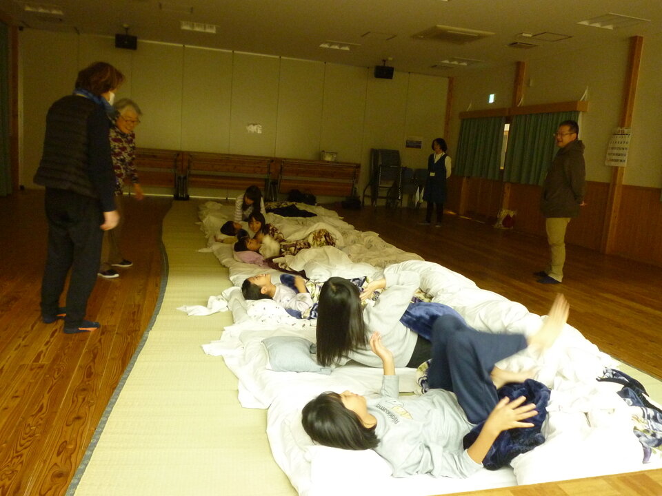 荷物を整理した後、通学合宿で子どもたちのサポートをしていただく地域のみなさんや、保護者の方も参加し、開講式を行いました。それぞれに自己紹介を行い、合宿期間中のスケジュールや注意事項を再度確認し、早速夕食の準備に入りました。