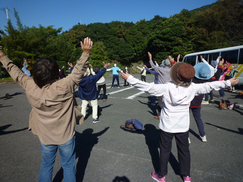 爽やかな秋空の下、10月29日(水)に博愛の里中川副まちづくり協議会 健康・福祉部会が主催する「健康ウォーキング」が開催されました。2台のバスに乗って、場所は昨年と同じ、金立コスモス園へ行きました。
