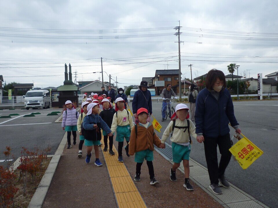 最後に、一緒に活動をしてくださったたけの子くらぶの皆さんに挨拶をして、子どもたちは園へ歩いて帰りました。