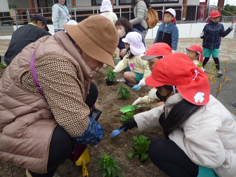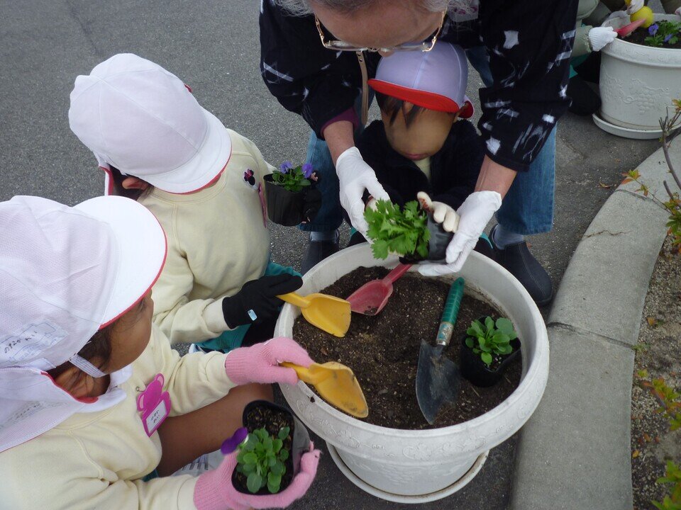「大きくなあれ。きれいになあれ。」子どもたちのかけ声を聞いた花々が、これから立派に育ちますように、見守っていきたいと思います。