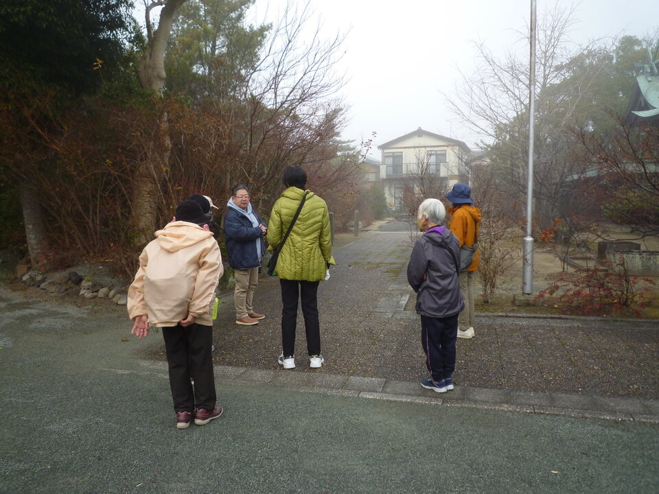令和8年1月16日(金)、歴史・伝統部会による「歴史探訪ウォーキング」に参加しました。当日は早朝からの深い霧に包まれる中、参加者10名が公民館に集合。江頭部会長からコース説明を受けた後、地元の歴史を再発見する旅へと出発しました。
