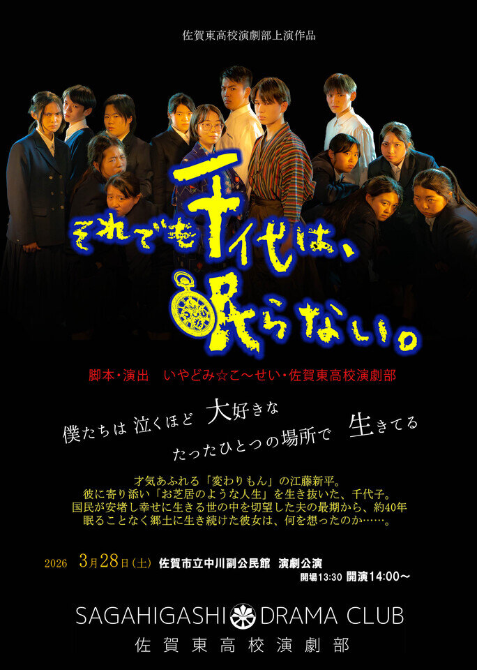 幕末の激動の時代に生きた「千代子」達の生き様を、佐賀東高校演劇部の素晴らしい劇でお楽しみください。