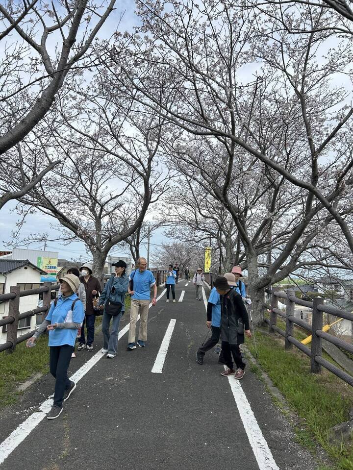 諸富文化体育館から徐福サイクルロードを歩き、満開の桜に「きれい」「癒される」との声も上がりました。