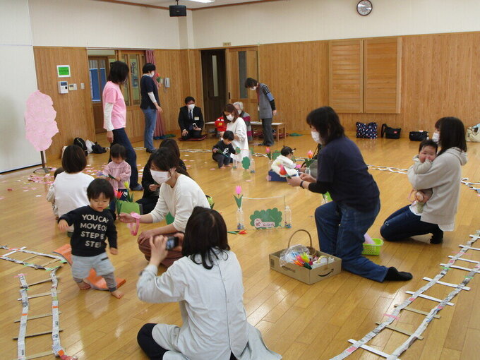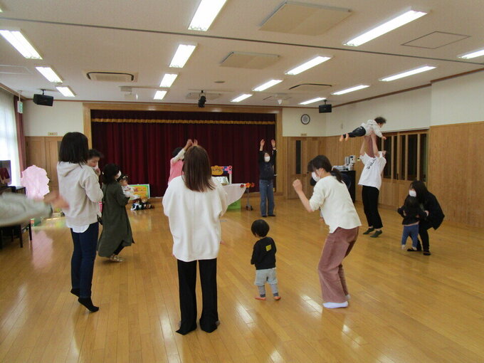 「子育てサロン」の時間が経過するとともに保護者や子どもの顔は明るく柔和になっていきました。子どもたちの笑い声や保護者の笑顔など、会場は賑やかで華やいだ雰囲気になりました。