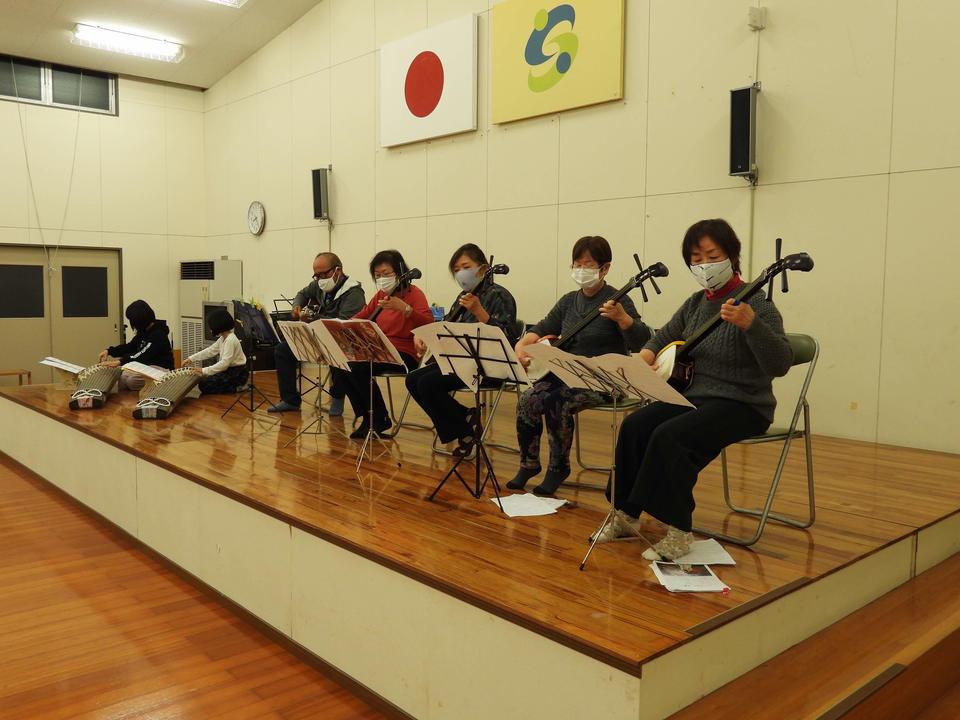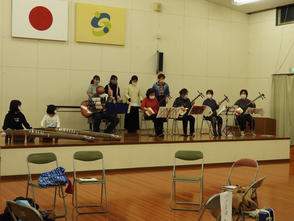 『~西川副を音楽でつなごう~みんなのコンサート』にタイトルが決まり、全体で演奏する「ふるさと」「パプリカ」を琴、ギター、三味線、ハンドベルの4グループでの音合わせにも熱が入ります。