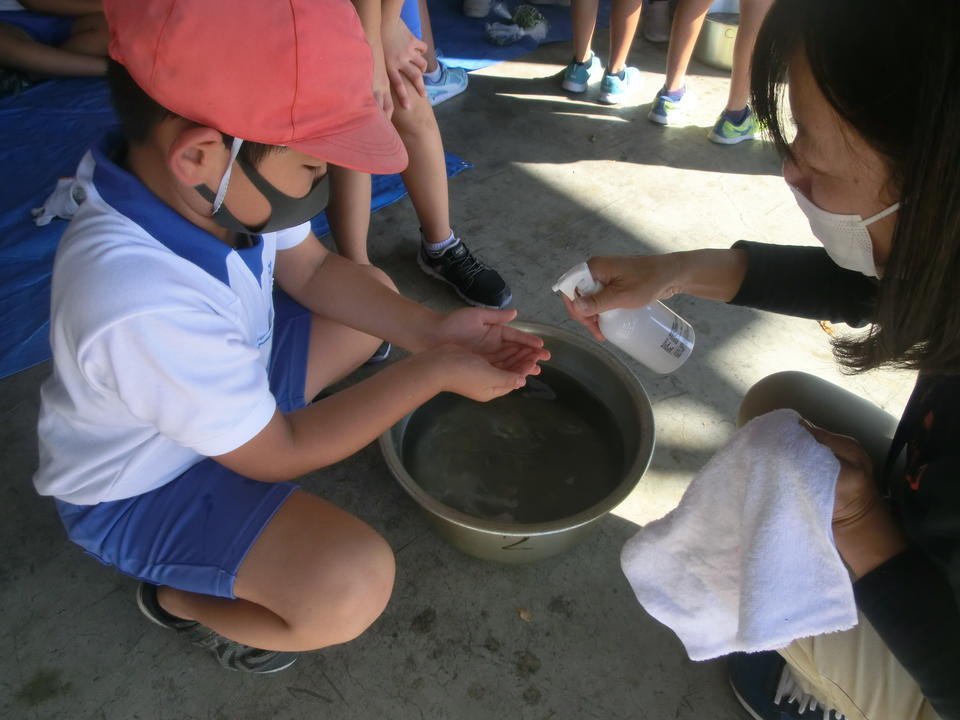 3.次は、たらいに集めた豆を、持ち帰り用として各自ナイロン袋に入れます。![]()