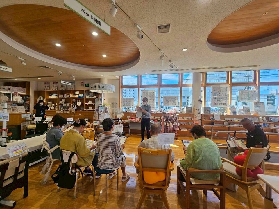 今回は、「佐賀県在宅サポートセンター」を訪問し、高齢者等が自立した快適な住宅生活を過ごすための福祉用具や住宅改修等を見て・触れて・試して、楽しく学習することができました。
