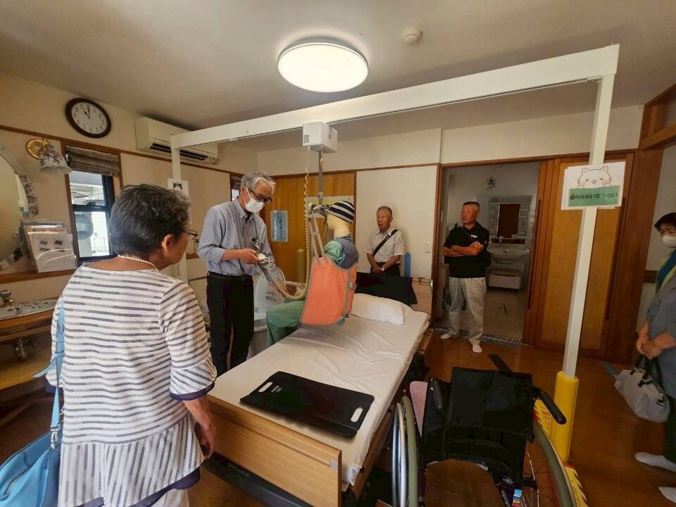 リフトを使ってのベッドへ移乗やスライディングボードを活用した体位交換の方法等を学びました。
