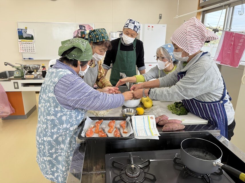 調理中は、減塩の工夫や調理のポイントについてのお話があり、参加者の皆さんから活発に質問が出るなど、和やかで楽しい時間となりました。