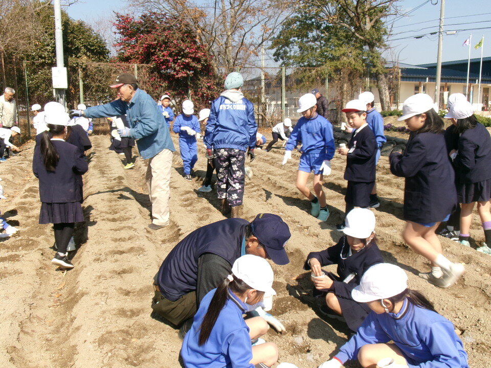 2月12日に、西川副小学校の2年生がじゃがいもを畑に植える、「じゃがいも栽培体験学習」を、まちづくり協議会などの協力のもと行いました。