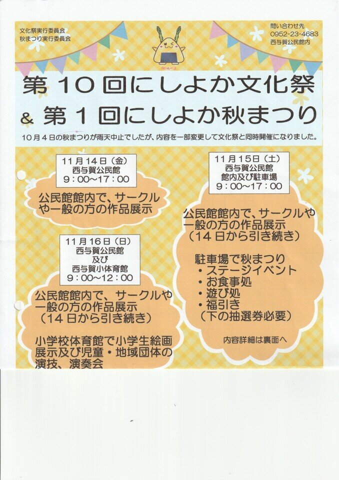にしよか文化祭&秋祭り合体で 11月14から16日