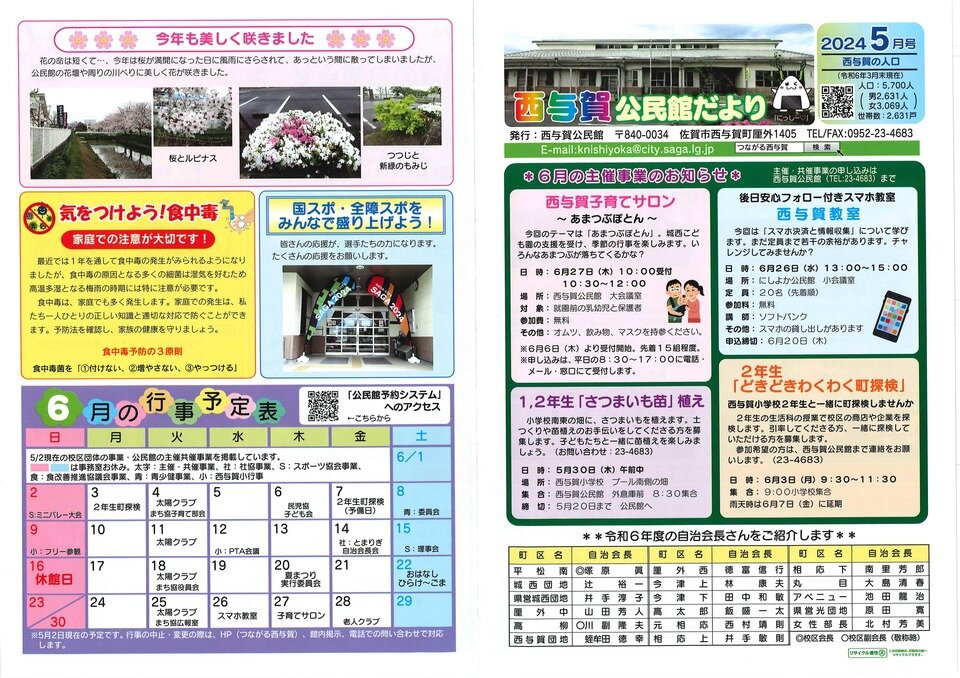 西与賀公民館だよりを発行しました。
