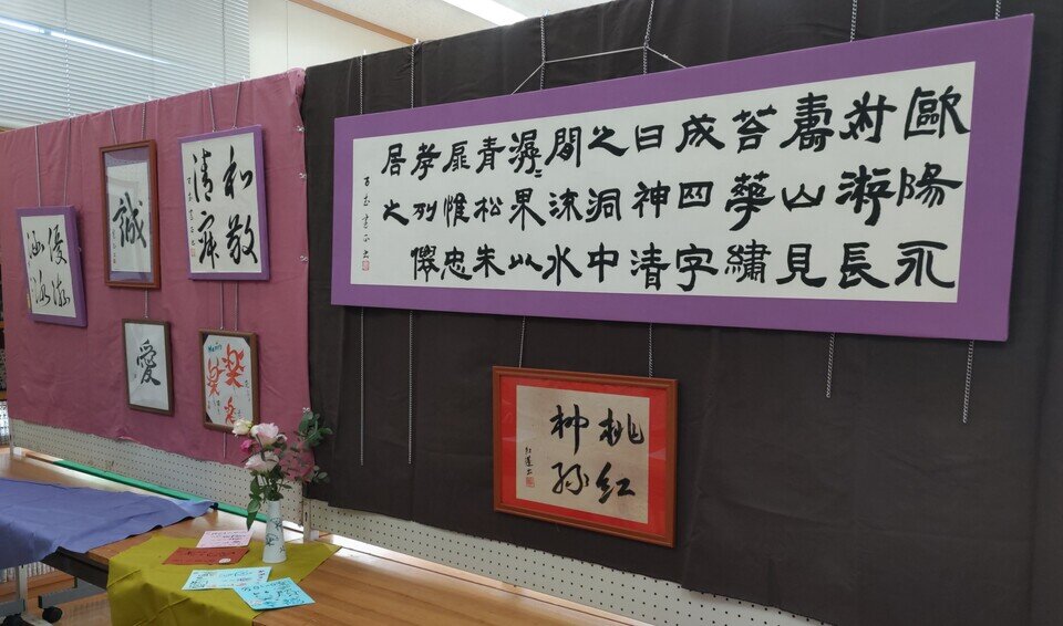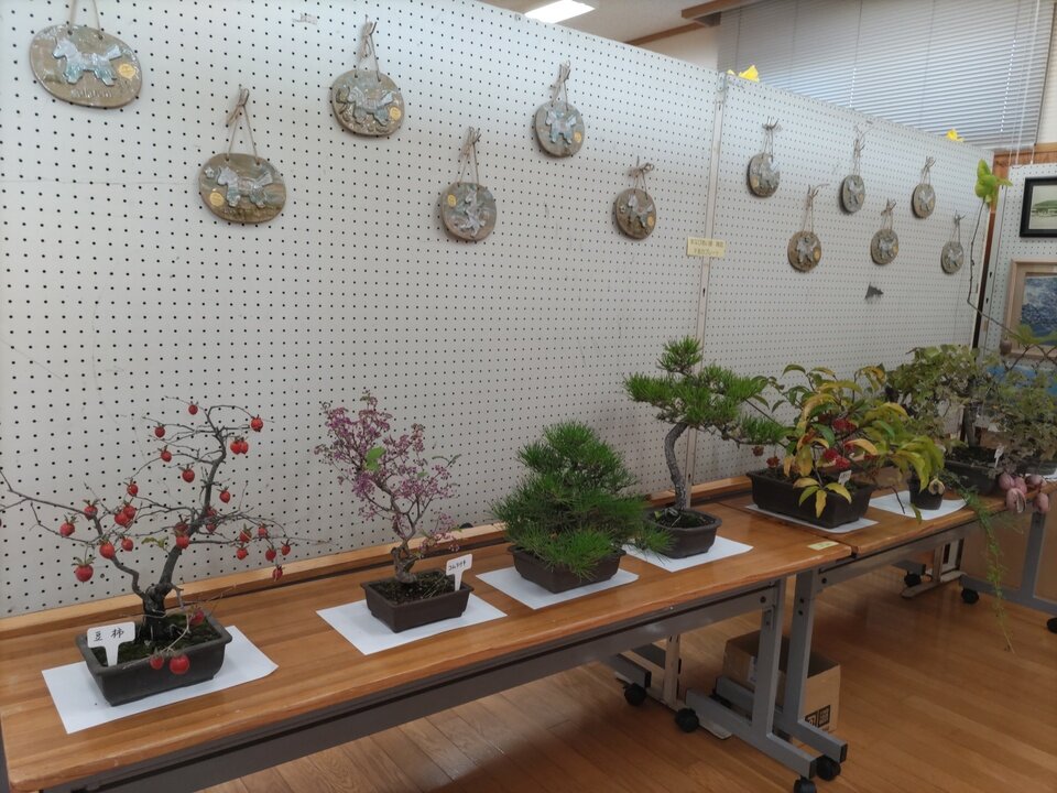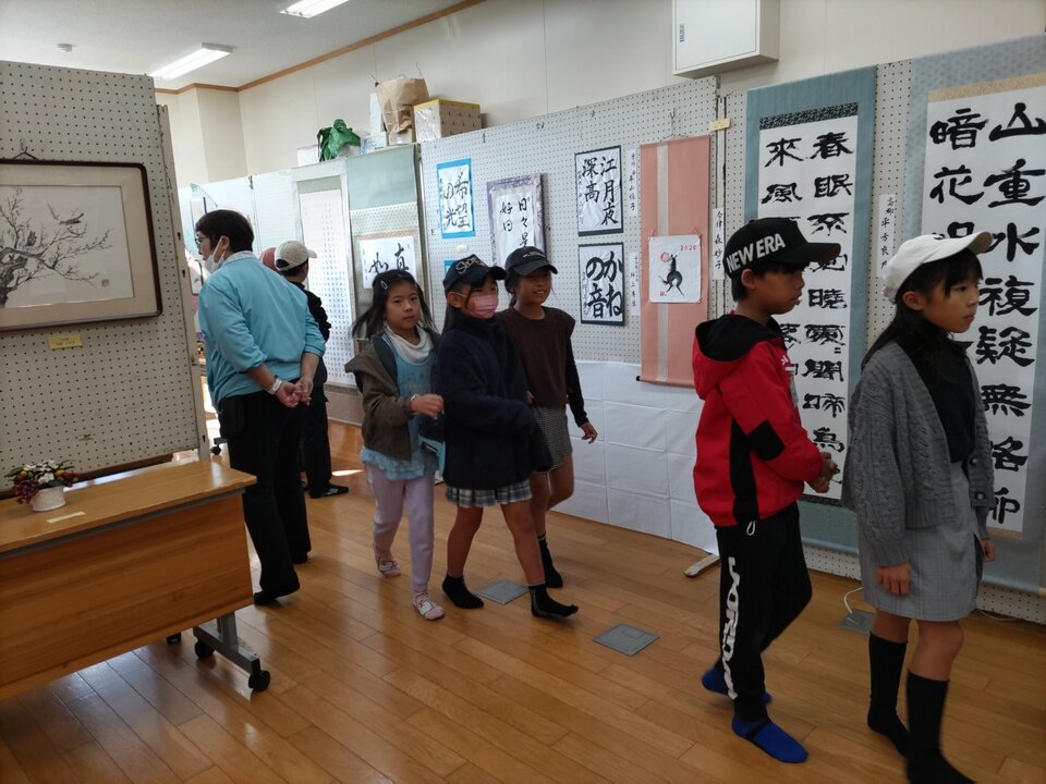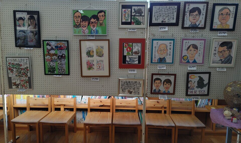 11月14日の初日は西与賀公民館で地域の皆さん方から応募のあった作品やサークル活動の紹介が公民館の廊下、図書館、小会議室にところ狭しと展示されていました。一般客や西与賀小学校からは学年ごと全校生徒が来場、いろんな作品に感動し「美術館館みたい」といった声も聞かれました。