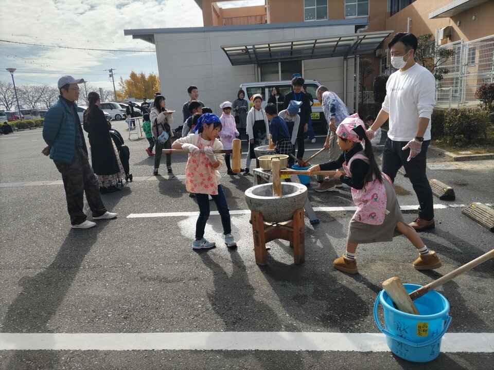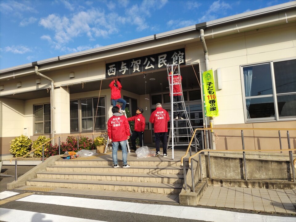 11月30日日曜日西与賀公民館で子育て部会の「餅つき」と「イルミネーション設置」が行われました。