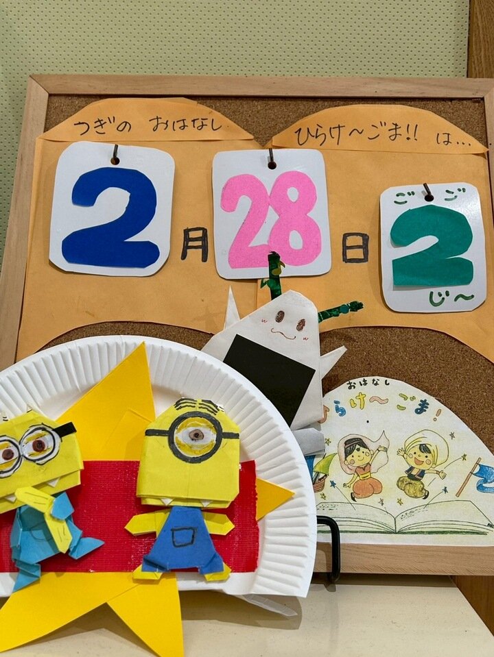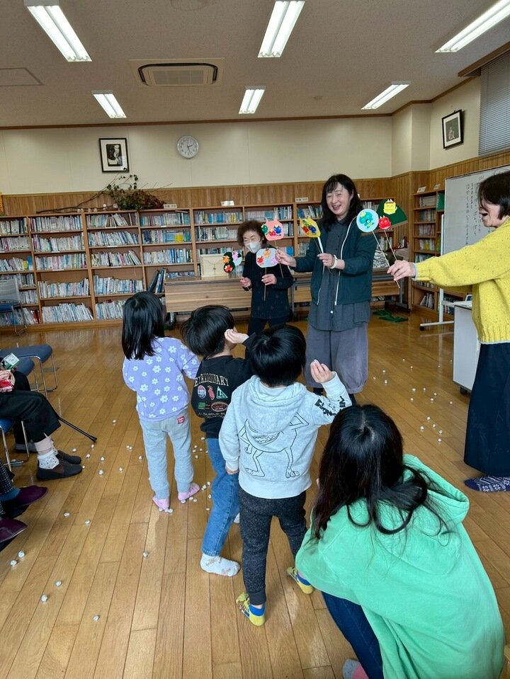 「せつぶん」をテーマに、絵本や大型絵本、紙芝居の読み聞かせの他、うたや手遊び今回は豆まきもしました!