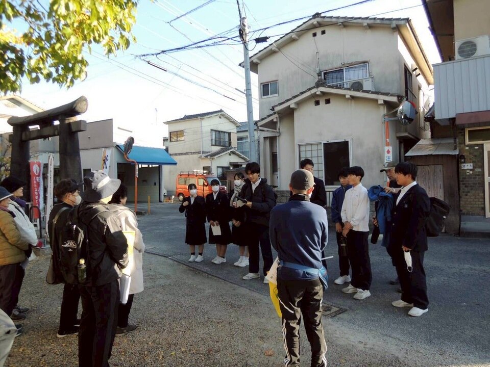 日新まちづくり協議会の地域文化部会では、昭栄中学校の学生と日新校区の大人が一緒に歩く「ウォークラリー」を11月22日(土曜日)に開催しました。
