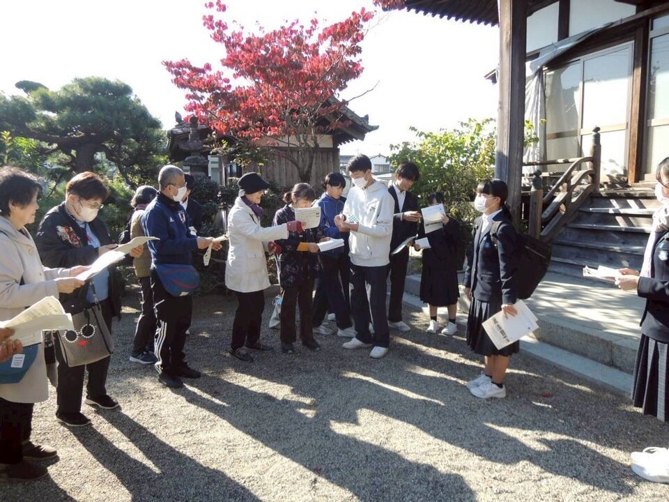 参加人数は中学生18人、校長先生、地域の大人23人と多くの皆さんに参加いただき、和気あいあいとした雰囲気で交流を深めることができました。参加した中学生からは「とても楽しかった」「来年も参加したい」との声があり、地域の人からも「中学生と触れ合えて嬉しかった」「歴史を歩きながら交流できて良かった」と喜びの感想が寄せられました。