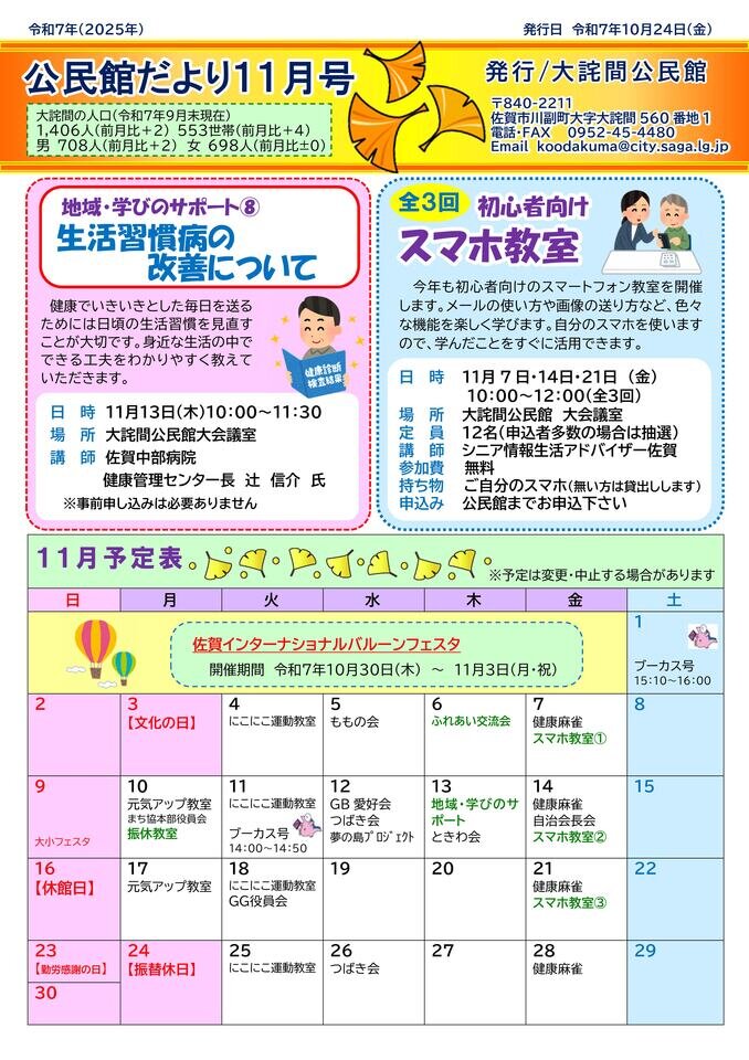 大詫間公民館だより 令和7年11月号
