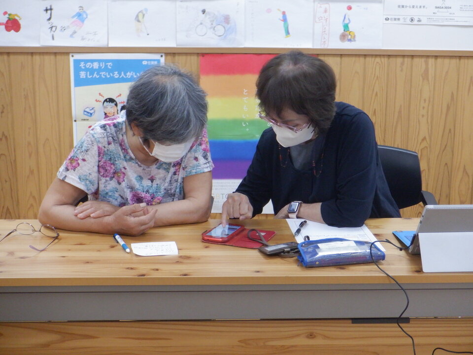 9月5日(木)、10時から「パソコン・スマホお困りごと相談会」を開催しました。シニア情報生活アドバイザー佐賀の皆さんにご協力いただき、一人1時間の交代制で、わからない所や普段使っていて困っていることなどを質問されていました。参加者の皆さんから、「スマホの便利な機能を教えてもらってよかった」、「困りごとが解消されて助かった」などの感想をいただき大変好評でした。
