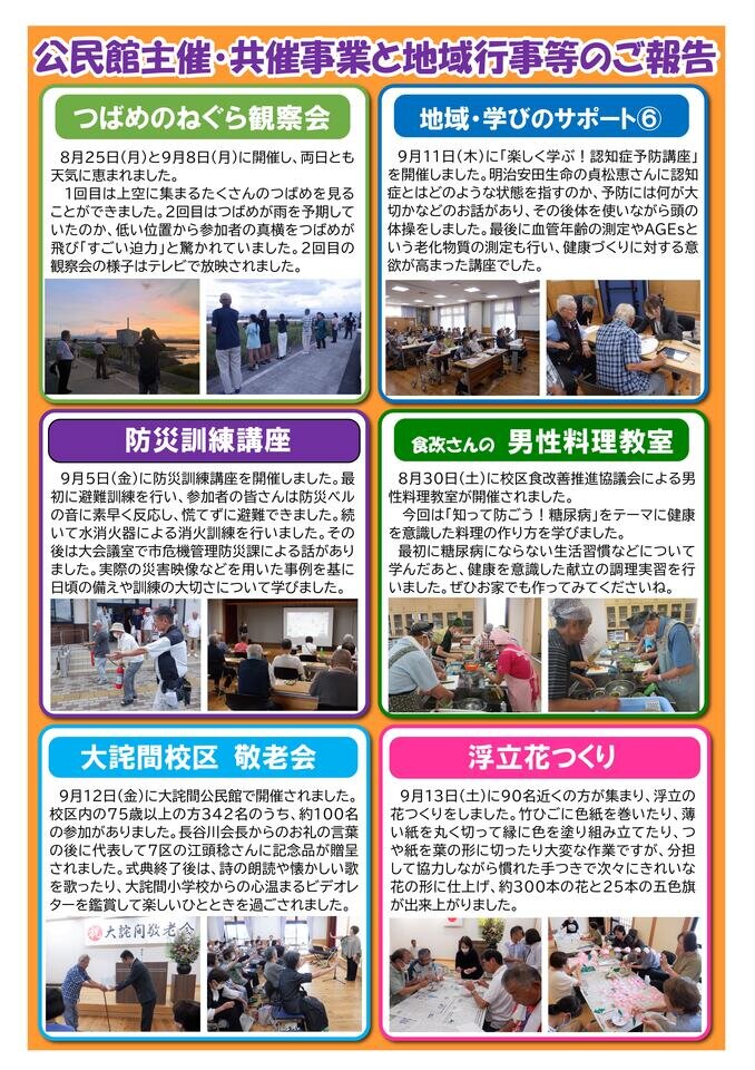 大詫間公民館だより10月号を発行しました。主な内容は以下のとおりです。
