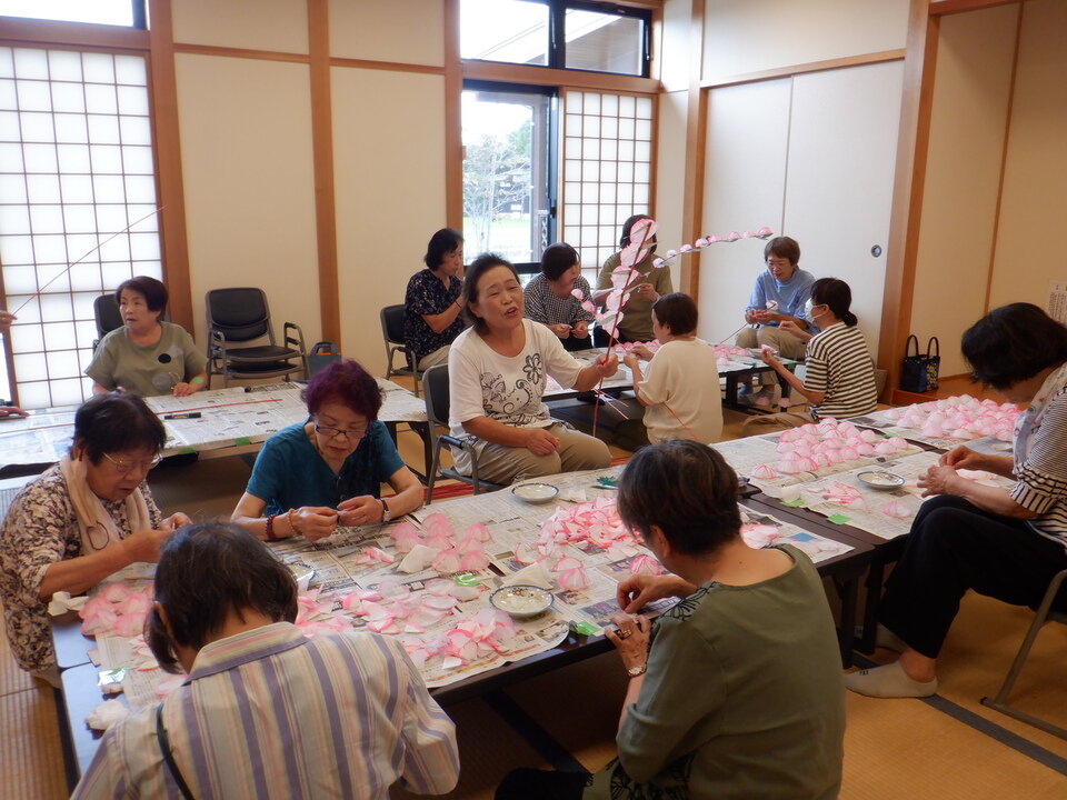 手間暇のかかる大変な作業ですが、分担しながら手早くたくさんの花を次々と作り上げられました。![]()